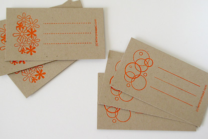 Calling cards pre-date business cards, and were once very popular in the South among society ladies. Today they can be used for gettin' digits, making lunch dates, making play dates for your little ones, as gift enclosure cards, or just to jot down someone's info. Never search for a scrap of paper again, or write your info on the back of an outdated business card! Simple graphics and neutral colors make these little cards perfect for both males and females! Two different designs in orange foil on 100 lb. French Kraft paper. 20 cards for $10, or get a double-pack of 20 of each card for $18!!